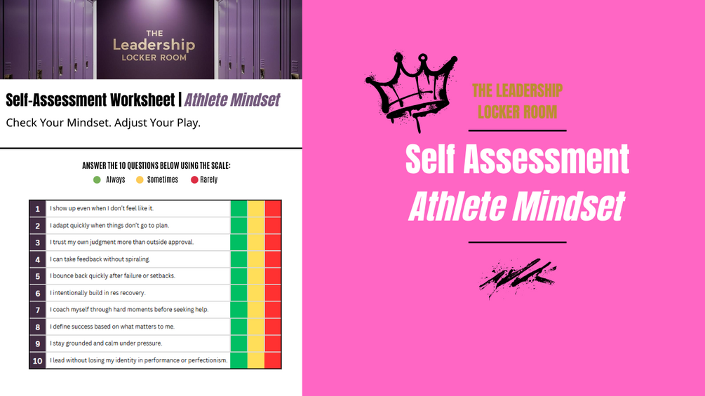The Athlete Mindset Self-Assessment is a bold, 1-page diagnostic tool designed to help high-achieving women evaluate how they’re showing up in leadership — and where they’re slipping.