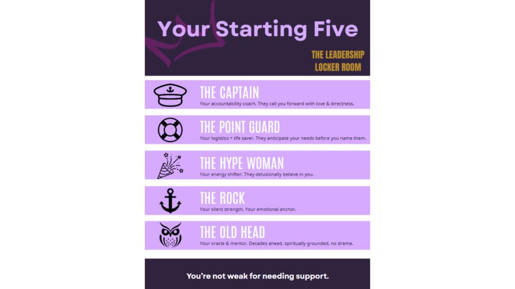 This one-page summary introduces your Starting Five — the five essential roles every high-performing leader needs to stay grounded, energized, and supported.